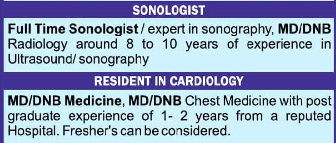 - रिक्त पदांचा तपशील – सोनोलॉजिस्ट & कार्डियोलॉजी
